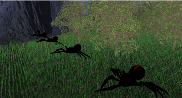 Spider and tree meshes with the spiders showcasing skeletal animation.
