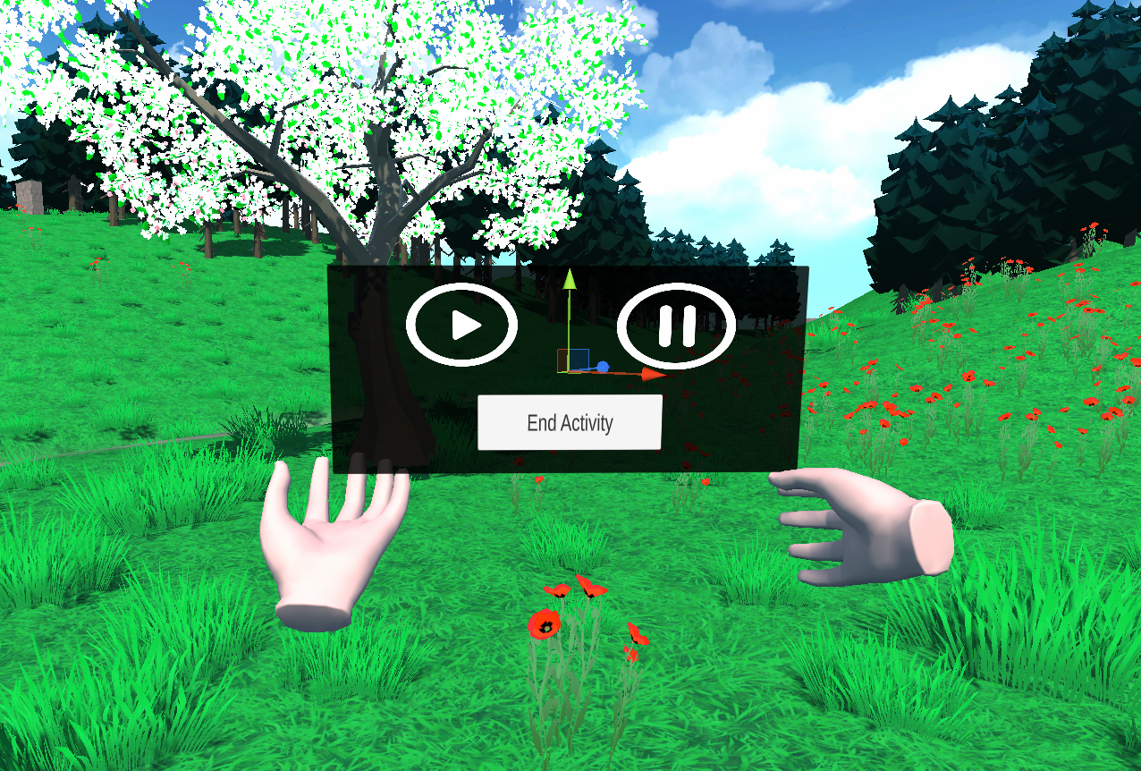 One of the activities offered in the game is painting. This is because it is an activity that requires engagement from the participant, allowing them to focus their attention on a single activity and achieve a flow state while emotionally expressing themself. This activity works well in this project as it allows the user to fully take advantage of the VR format